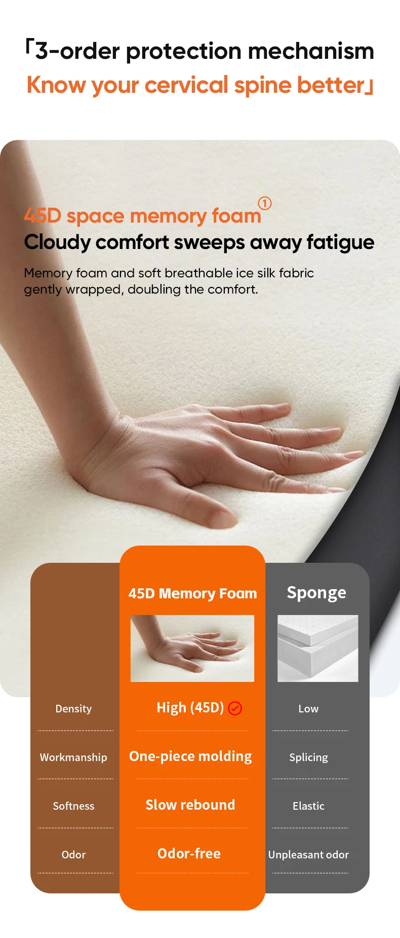 El mecanismo de protección del T3Order proporciona soporte cervical inteligente.Combinado con espuma viscoelástica espacial 45D y tela de seda helada transpirable, brinda comodidad similar a una nube y elimina eficazmente la fatiga.