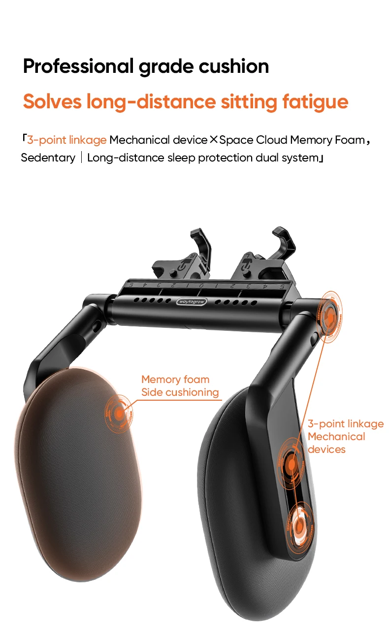 Soporte seguro para el cuello para un viaje sin fatiga.Diseñado con espuma viscoelástica espacial y una estructura de doble núcleo de grado militar para evitar tensiones en largas distancias.