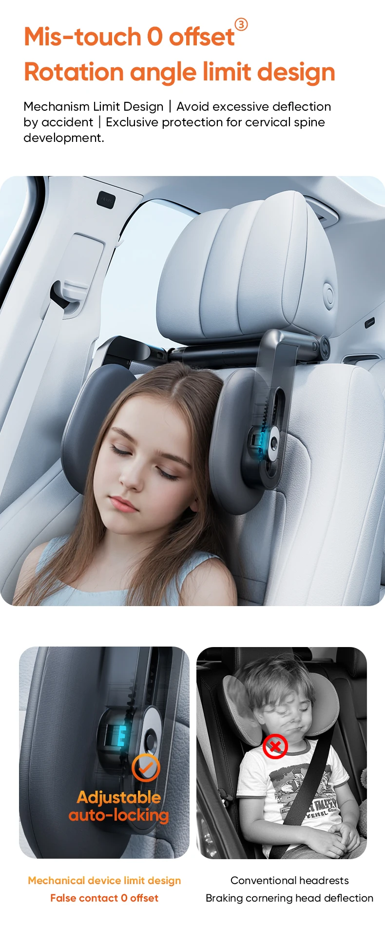 Bloqueo de misrotación cero.Nuestro mecanismo limita el ángulo de rotación para evitar una inclinación excesiva hacia atrás, ofreciendo una protección exclusiva para su columna cervical.