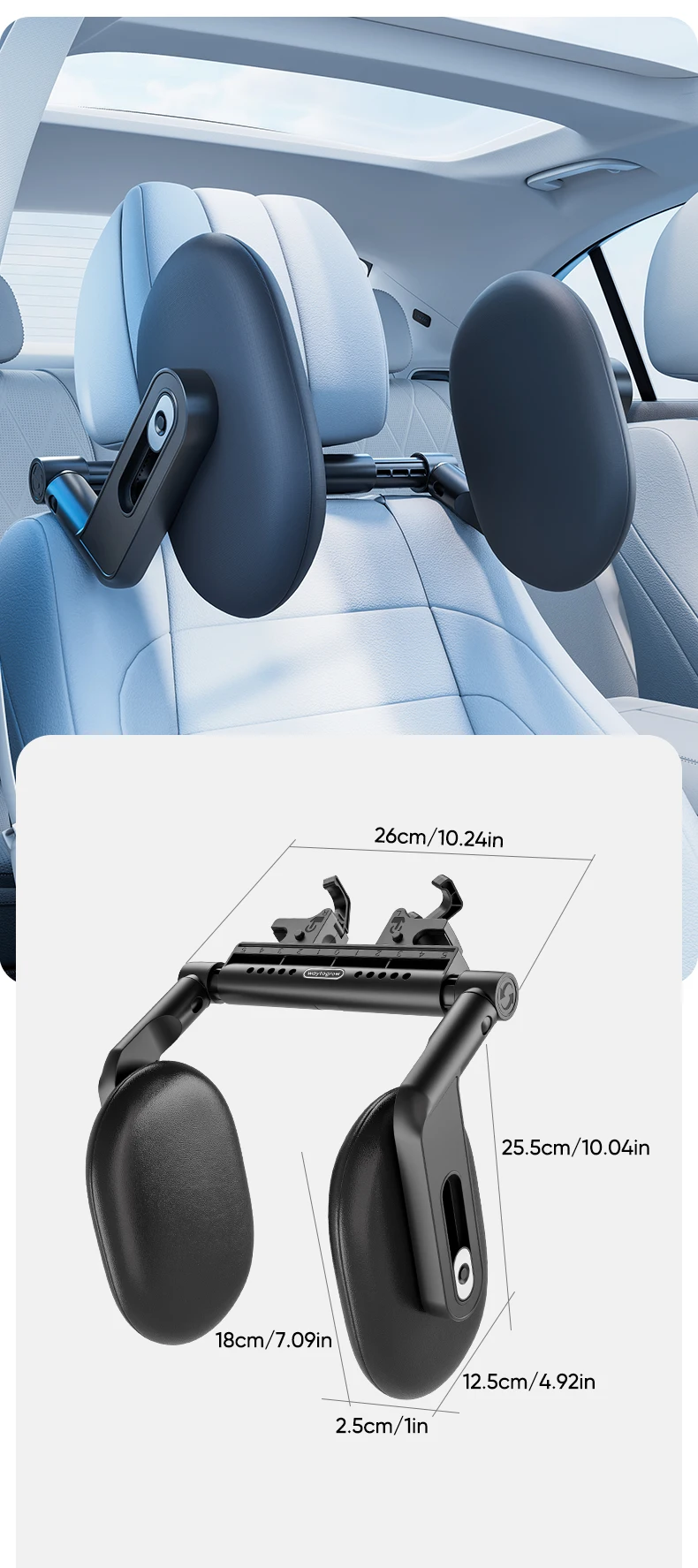 • Se adapta a vástagos de reposacabezas de 70-180 mm